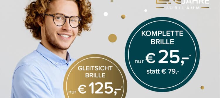 Ein Vierteljahrhundert gutes Sehen und Hören muss gefeiert werden. Darum haben wir als Dankeschön für Ihr Vertrauen viele Jubiläumsangebote für trendige Designerbrillen und Markenbrillengläser “Made in Germany” für Sie vorbereitet. Auch für Ihren Bedarf an modernsten Hörgeräten haben wir das passende Angebot parat.