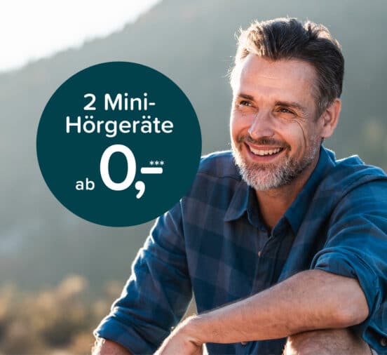 *4/*5 Gilt für Mitglieder gesetzlicher Krankenkassen mit Leistungsanspruch und ohrenärztlicher Verordnung, zzgl. der gesetzl. Zuzahlung von € 10,– pro Hörgerät, Privatpreis: zuzüglich € 690,– pro Hörgerät. Aktionspreise gültig bis 31.05.2024. Solange der Vorrat reicht. Wir behalten uns vor die Aktion zu verlängern. Irrtümer und Schreibfehler vorbehalten. Angebote gültig solange der Vorrat reicht. Alle Abbildungen sind beispielhaft. Angebote nicht mit weiteren Aktionen und Gutscheinen kombinierbar.