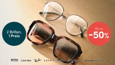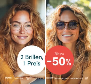 Beim Kauf einer Brille erhalten Sie jetzt eine zweite Fassung im Paket dazu – und sparen damit bis zu 50% auf Ihren gesamten Einkauf.*