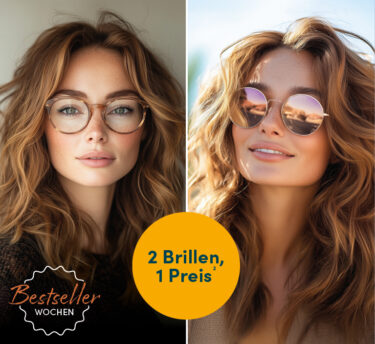 Beim Kauf einer Brille erhalten Sie während den Bestseller Wochen eine zweite Fassung im Paket dazu – und sparen damit bis zu 50% auf Ihren gesamten Einkauf.²
