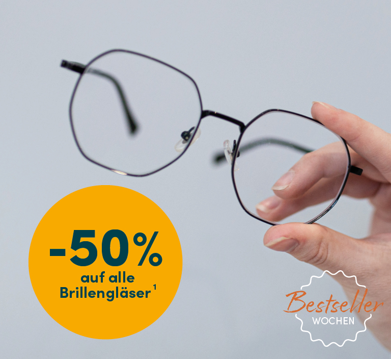 Sparen Sie jetzt -50% auf alle Brillengläser 1 – gültig auf Nah- und Ferngläser, Sonnenbrillengläser sowie auf Gleitsichtgläser und viele mehr!