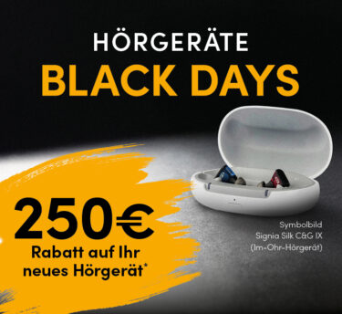 Sichern Sie sich während der Hallmann Black Days Ihren 250 € Rabatt auf Ihr neues Hörgerät*.