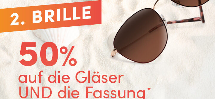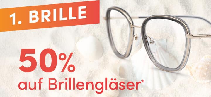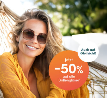 Genießen Sie die warmen Sommertage mit perfekter Sicht: Sparen Sie jetzt -50% auf alle Brillengläser* – gültig auf Nah- und Ferngläser, Sonnenbrillengläser sowie auf Gleitsichtgläser und viele mehr!