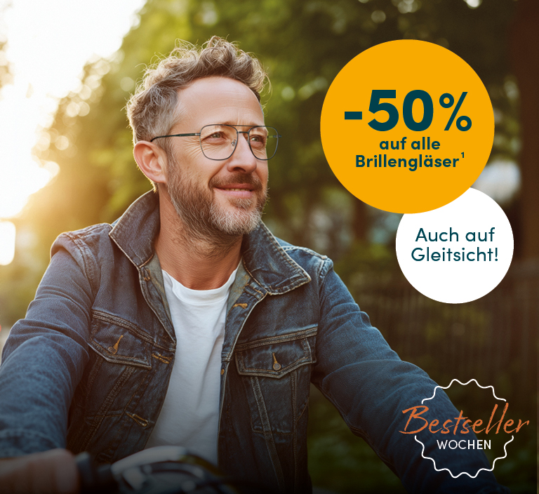 ¹Gültig bis zum 20.11.2025 beim Kauf von Meisterglas® Brillengläsern und Sonnengläsern. Sie erhalten 1 Brillenglas der Marke Meisterglas® kostenlos beim Kauf eines Glaspaares. So sparen Sie 50 % auf den UVP des Herstellers. Nur für Neuaufträge. Kann nicht mit anderen Aktionen, Komplettbrillenangeboten und Gutscheinen kombiniert werden. Keine Barauszahlung möglich. Wir behalten uns vor, die Aktionen zu verlängern. Sie sparen mit dem teuersten Gleitsichtglas 799€. Bild mit KI erstellt.