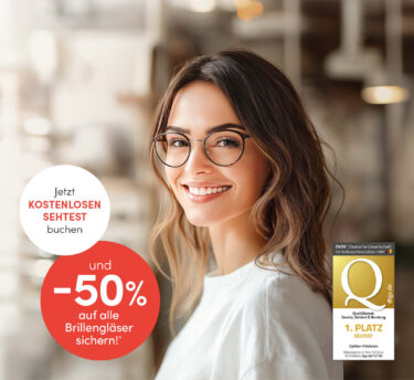 Lassen Sie Ihre Sehstärke beim besten Sehtest professionell überprüfen und sichern Sie sich 50% Rabatt auf hochwertige Brillengläser.*