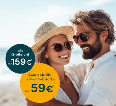 Feiern Sie mit uns die Vorfreude auf den Sommer – mit 100% UV-Schutz und klarem Durchblick! Entdecken Sie modische Sonnenbrillen mit Sehstärke für nur 59 € – oder Gleitsicht-Sonnenbrillen für 159 €.*