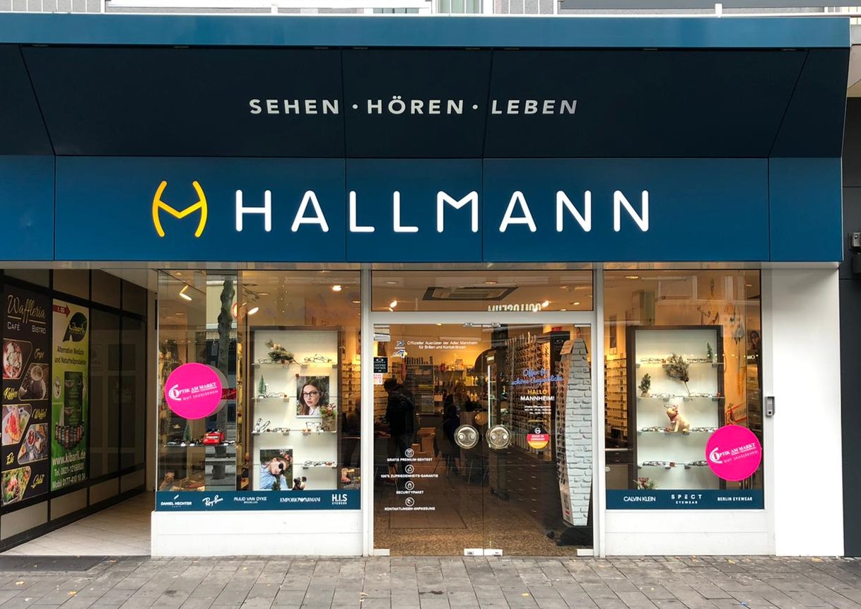 Optik Hallmann ist Ihr Fachoptiker in Ihrer Nähe. Für uns geht es um mehr als gutes Sehen. Wir möchten, dass Sie Ihr Leben mit allen Sinnen genießen und sich rundum wohlfühlen. Wir sind von Montag bis Samstag für Sie da. Unsere ausgebildeten Optiker erstellen gemeinsam mit Ihnen Ihr persönliches Sehprofil und beraten Sie zu Ihrer Brille oder Kontaktlinsen. Wir haben für Sie die passenden Einstärken-, Gleitsicht- oder Sonnenbrillen und Kontaktlinsen im Sortiment. Optik Hallmann führt bekannte Marken wie Ray Ban, Calvin Klein und viele mehr, sowie Brillengläser Made in Germany. Vereinbaren Sie einen Termin. Wir freuen uns auf Ihren Besuch!