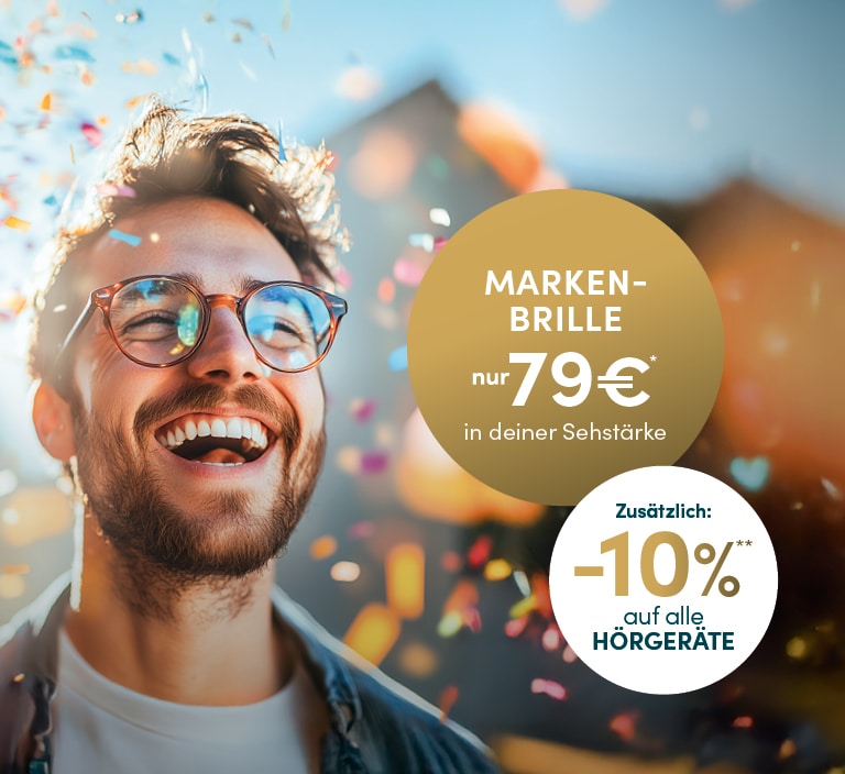 Feiern Sie mit uns und sichern Sie sich eine große Auswahl an Markenbrillen in Ihrer individuellen Sehstärke für 79 €*.